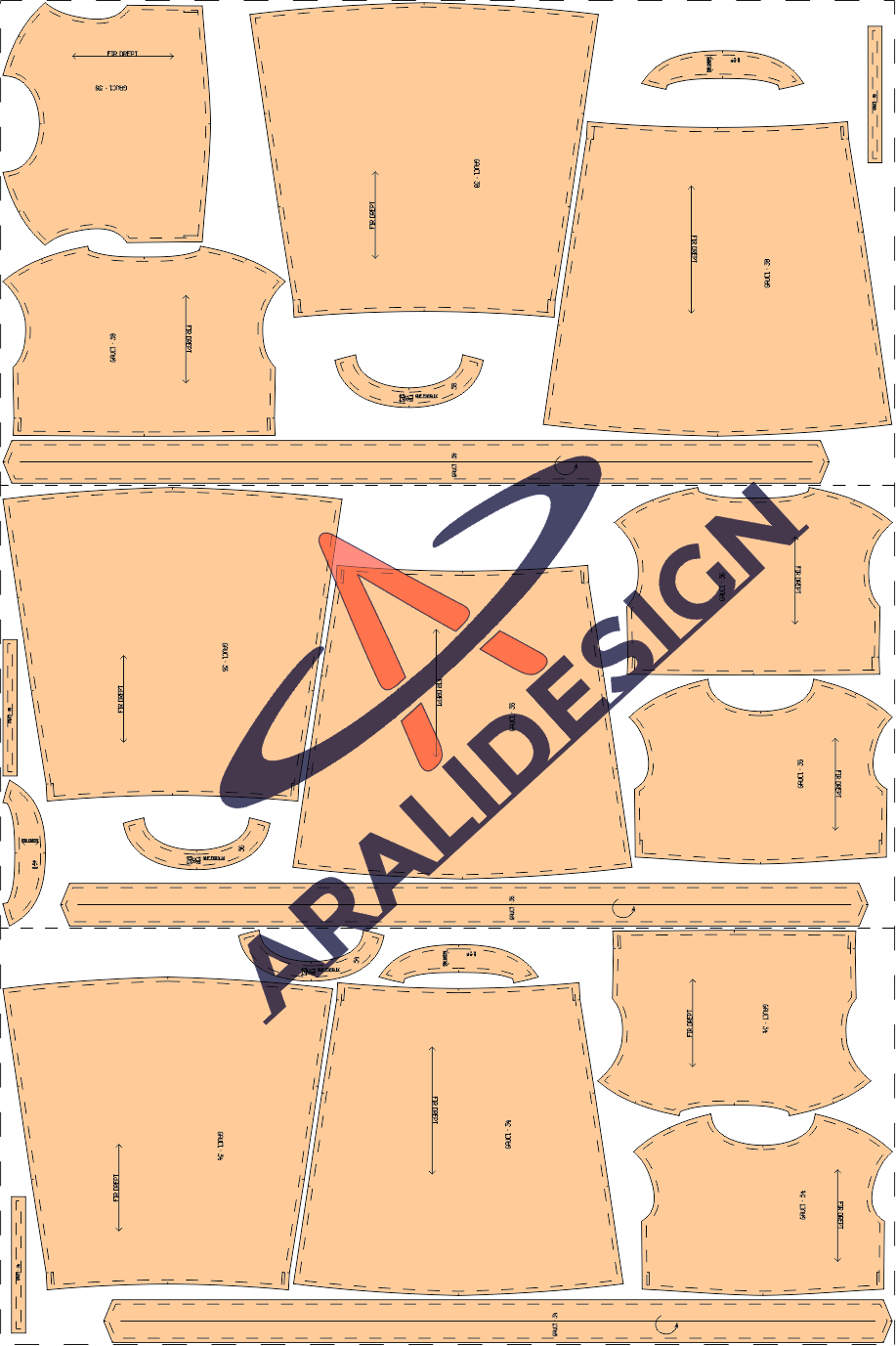 Orice articol de imbracaminte porneste de la un design si un tipar care stau la baza croielii materialului. Tiparul de croitorie reprezinta prelungirea designului in executarea repetata a modelului de imbracaminte adaptat la masurile corporale. Toate tiparele sunt create in sisteme profesionale de proiectare din industria textila pentru a putea fi folosite cu succes de catre Dumneavoastra in productia unei game largi de articole de imbracaminte pentru femei, barbati si copii. Acestea pot fi furnizate catre Dumneavoastra fie ca fișiere PDF în format A4, A3, A1 si A0 sau in format WIDE, fie fișiere CAD - DXF pentru imprimare imediată la dimensiune reală. Ele vor fi trimise prin e-mail la adresa pe care o menționați la finalizarea comenzii, dupa efectuarea platii online. Toate tiparele includ rezerva de coasere si semnele de potrivire pe conturul pieselor. Tiparele in format PDF sunt tipare ce pot fi descarcate de pe internet si tiparite de catre Dvs pe o imprimanta A3 sau A4 sau la un centru de calcul A0 sau A1. Ulterior paginile pot fi lipite impreuna conform instructiunilor, decupate sau transferate pe carton si folosite ca un tipar de croitorie. Cu toate acestea, majoritatea celor interesati preferă comandarea modelelor în format Wide PDF, deoarece se află pe o foaie largă și lungă de hârtie. Puteți trimite fisierul la cel mai apropiat Centru de calcul și veti primi un model ușor de tăiat la un cost acceptabil. Tiparele printate pe hartie termoadeziva sunt la scara reala, marime cu marime, incadrate separat si le veti primi in decurs de 24-48 ore prin intermediul serviciului de curierat rapid. Tiparele in format DXF Aama sunt similare, dar sunt un format tehnic, destinat pentru sisteme profesionale de proiectare textila, si anume: Optitex, Lectra, Gerber, Gemini Cad System etc. Timpul de executie al unui tipar personalizat este intre 24-72 ore sau chiar mai mult, in functie de gradul de dificultate si de solicitarile primite.