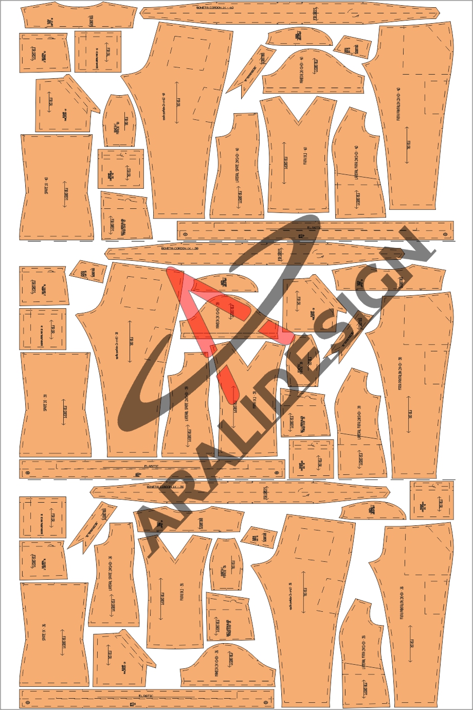 Orice articol de imbracaminte porneste de la un design si un tipar care stau la baza croielii materialului. Tiparul de croitorie reprezinta prelungirea designului in executarea repetata a modelului de imbracaminte adaptat la masurile corporale. Toate tiparele sunt create in sisteme profesionale de proiectare din industria textila pentru a putea fi folosite cu succes de catre Dumneavoastra in productia unei game largi de articole de imbracaminte pentru femei, barbati si copii. Acestea pot fi furnizate catre Dumneavoastra fie ca fișiere PDF în format A4, A3, A1 si A0 sau in format WIDE, fie fișiere CAD - DXF pentru imprimare imediată la dimensiune reală. Ele vor fi trimise prin e-mail la adresa pe care o menționați la finalizarea comenzii, dupa efectuarea platii online. Toate tiparele includ rezerva de coasere si semnele de potrivire pe conturul pieselor. Tiparele in format PDF sunt tipare ce pot fi descarcate de pe internet si tiparite de catre Dvs pe o imprimanta A3 sau A4 sau la un centru de calcul A0 sau A1. Ulterior paginile pot fi lipite impreuna conform instructiunilor, decupate sau transferate pe carton si folosite ca un tipar de croitorie. Cu toate acestea, majoritatea celor interesati preferă comandarea modelelor în format Wide PDF, deoarece se află pe o foaie largă și lungă de hârtie. Puteți trimite fisierul la cel mai apropiat Centru de calcul și veti primi un model ușor de tăiat la un cost acceptabil. Tiparele printate pe hartie termoadeziva sunt la scara reala, marime cu marime, incadrate separat si le veti primi in decurs de 24-48 ore prin intermediul serviciului de curierat rapid. Tiparele in format DXF Aama sunt similare, dar sunt un format tehnic, destinat pentru sisteme profesionale de proiectare textila, si anume: Optitex, Lectra, Gerber, Gemini Cad System etc. Timpul de executie al unui tipar personalizat este intre 24-72 ore sau chiar mai mult, in functie de gradul de dificultate si de solicitarile primite.